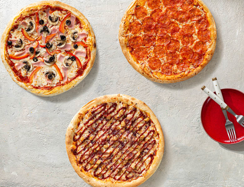 Пепперони (30 см), Чикен Барбекю (30 см), Капричоза (30 см).