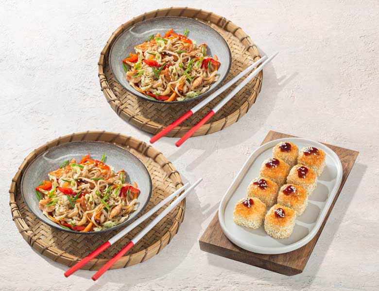 Фреш-ролл с цыпленком (сочная котлета из куриного бедра, салат Айсберг, помидоры, соус Цезарь, сыр Пармезан), картофель фри, клюквенный морс (500 мл).